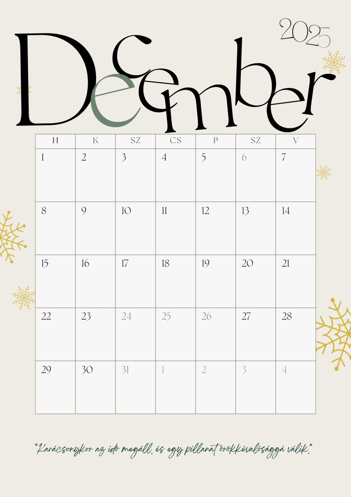 "Ez a karácsonyi tervező egyszerűen lenyűgöző! Elegáns és letisztult, a megjelenése azonnal magával ragadott, és a könnyen átlátható struktúra valóban segített abban, hogy stresszmentesen készülődhessek az ünnepekre. Egyszerűen imádom!"